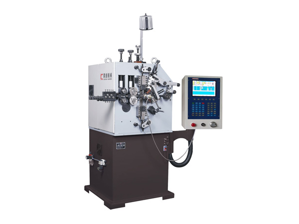 Our company's KCT-26A 2/3 Axis CNC High-speed spring coiling machine uses Taiwan computer control system, citing Japan import SANYO servo motor and high precision bearing, etc., with left and right direction tool holder. The models ( 26-type compression spring machine ) standard for two axis, can also be ordered with three axis, free spool, cam shaft and pitch axis, the axis can operate independently or with synchronous operation, forming speed, stable performance and high accuracy. Among them, the third axis is for KCT-26A computer compression spring machine push rod spacing knife increased, not only more convenient spring product forming, save debugging machine time and wire rod cost, but also can complete more difficult requirements of spring products.